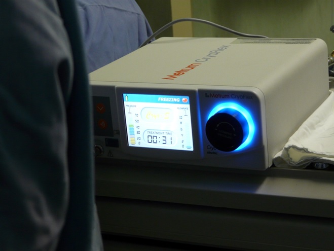 Fig.9. El Cryoflex produciendo la fase de congelación por espacio de 2 minutos, descongelación, congelación nuevamente por 2 minutos.